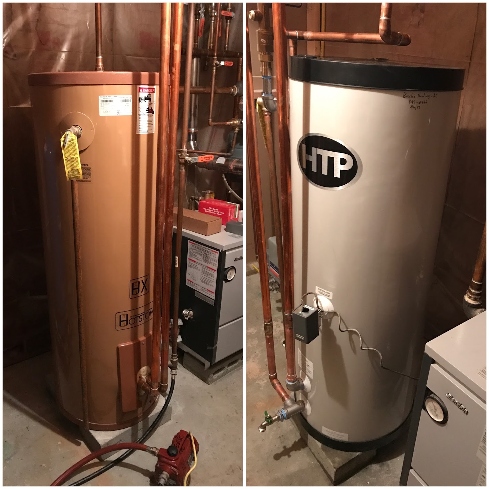 We want to thank Andrew and Dylan for installing our new hot water heater. It was a tough job (old heater was full of sediment-yuck, heavy and located in a teeny tiny space). They were prompt, polite and professional. We’re very happy with the service and recommend Brock’s for all your HVAC needs/questions.